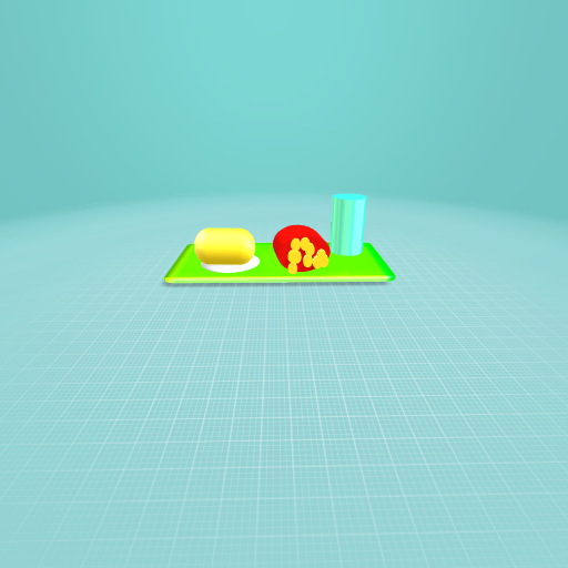 i made some food the big yellow thing is a barito and the blue thing is water and that red and yellow thing is french fries