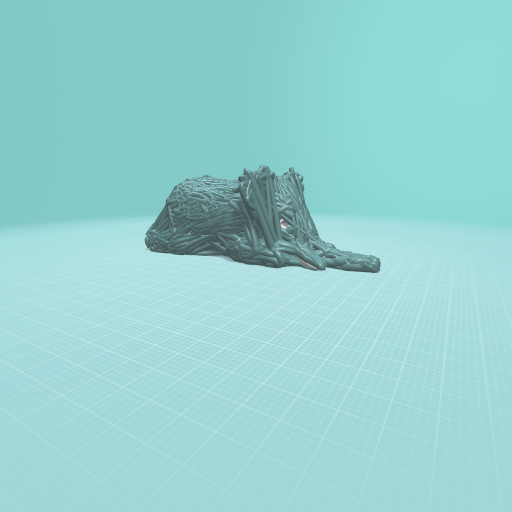 Its an elafant that is coverd in gray sticky glue. And its eyes are still plan white.The rest of the body is coverd in gray sticky glue.