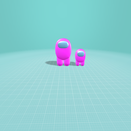 Pink crewmate and their mini crewmate