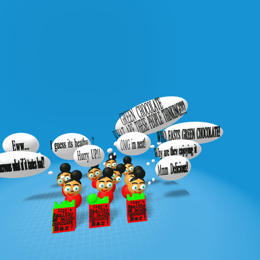 The message is that you should try your green foods because you may like it! Healthy foods can look yucky but may taste like chocolate or an