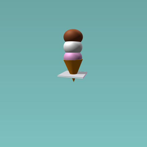 This ice-cream shows the three main flavours: chocolate, strawberry and vanilla, on a waffel cone.