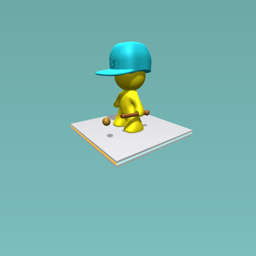 It’s a man in a base ball cap with a bat and a ball!