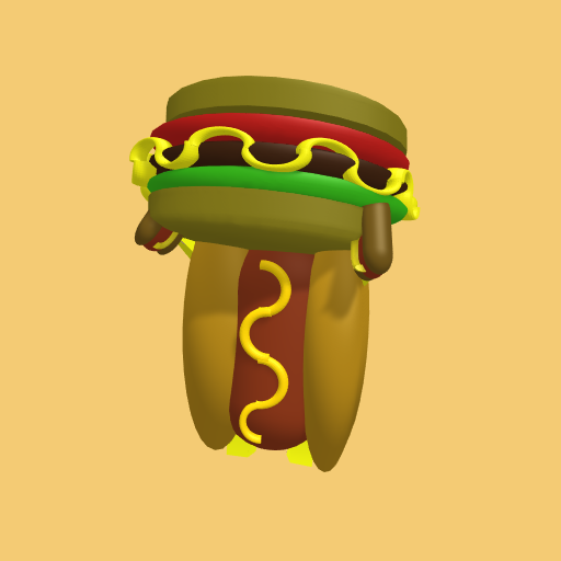 A hot dog lifting a burger?