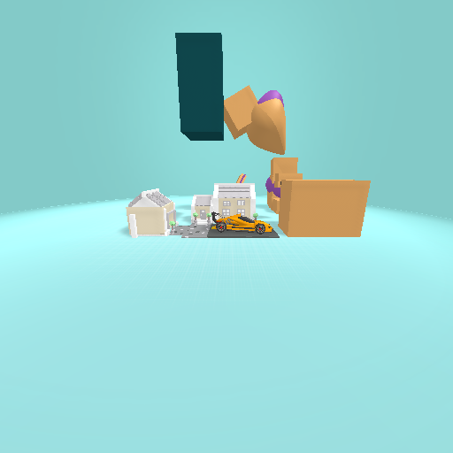 House with orange fastest car on road via. garage