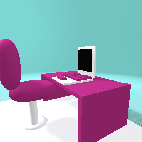 Computer, desk and chair