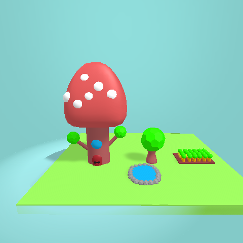 mashroom house with pond