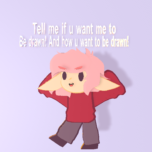 Just tell me if u wanna be drawn! :> ill draw u tommorow becuase apperantly i need to sleep so yee. Ill still be online just not making anything :^
