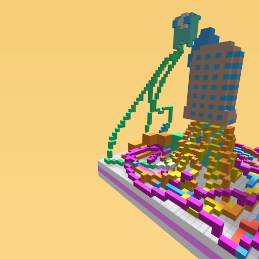There is lot of rainbow block and a tall tower in the middle.Rainbow!