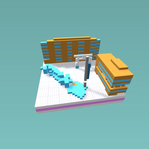 two big buildings and a beautiful gazebo, one long thingy and long circle thingy