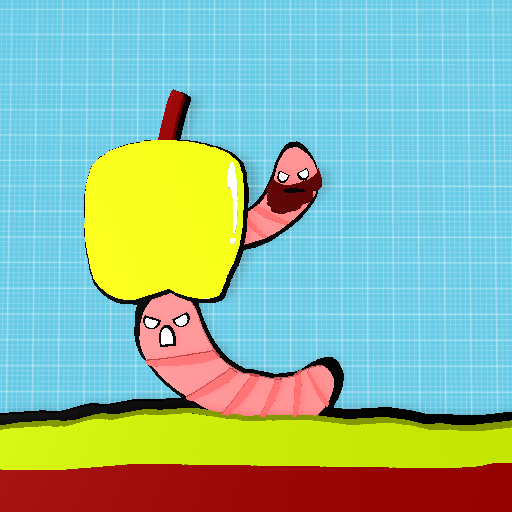 two worms fighting over an golden apple but one of them has a beard