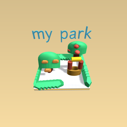 this is my park i have 2 tree in my park it is green and broun colores and i have 1well there is water in side it and i like my park