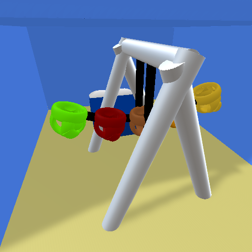 Very bright and colorful baby swing made for 5 babys that one parent can push by themselves. Doesn’t have a motor due to keeping price low.