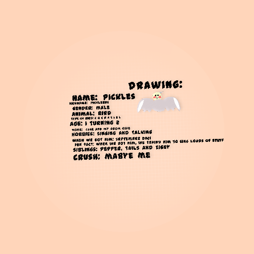 he is my pet birb lol UwU he is not my sibling just a friend. he is a simp to me~~ and i like him. he trys to flirt eith my hands, and my feeling. i luv him so much. if u are inspo then if u do it, add me to the creds