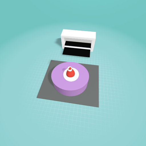 A lavender cake with a srawberry and cream on top