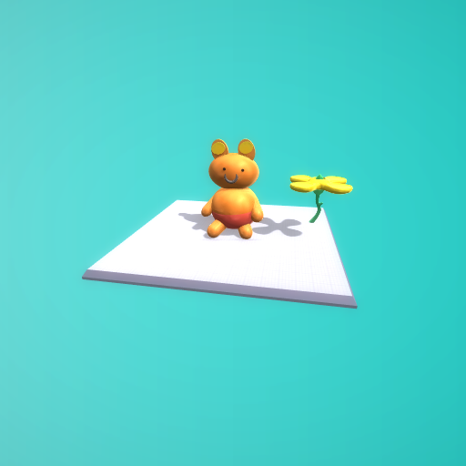 it's a happy bear with a flower beside it