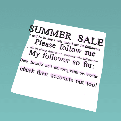 I will be having a summer sale once I get 10 followers! Shoutouts to anyone who follows me!8 followers 2 to go!