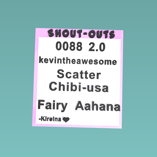 Thanks a lot for supporting me! This isn't everyone so if you want me to give you a shout-out just tell me!