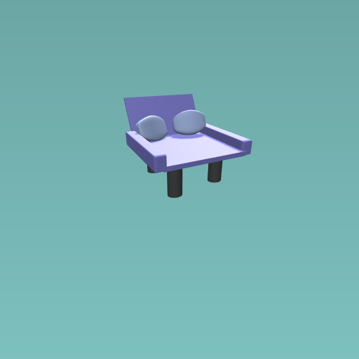 Purple chair with to blue pillows.