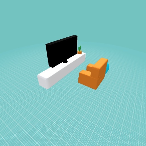 Tv in the living room with couch beanbag and a smalll plant