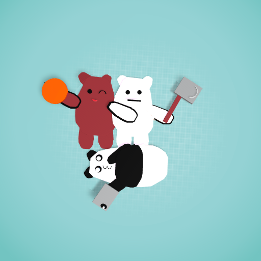 Grizz and ice bear are playing with there baskit ball and axe. Panda is playing games on his phone and taking pics of him self