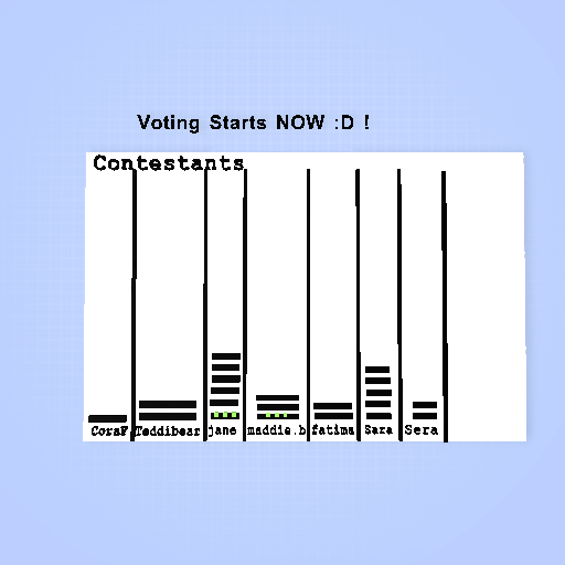 AmandaLake3Im gonna vote CoraF (because she likes a lot of my designs) and im gonna vote jane (because shes my bestie and was really kind to me when we met irl)