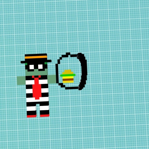 he's holding a bag with a burger but there's a optical illusion credits to impaired pencil