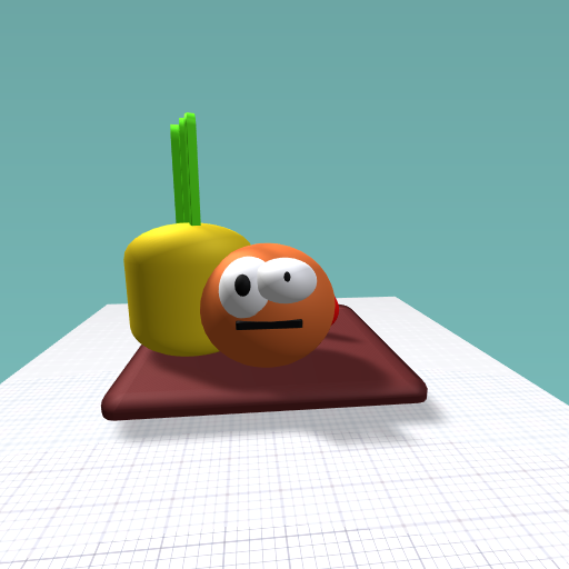 The annoying orange with an apple and a pineapple