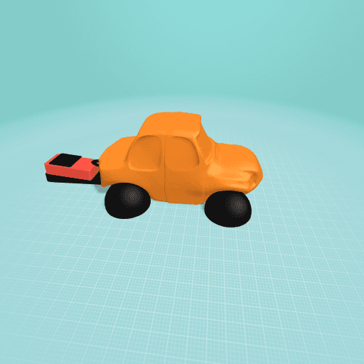 its a car that entirely runs on rubber bands. a person at the back has to use a button to stretch the rubber band, when he/she woul