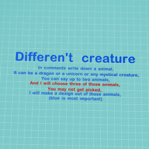 I am picking randomly, (if you have questions, ask in comments) You can also choose specific animal parts. But I may not use those parts.