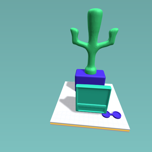 it is made of a tree,tv,stool.cross,and bowls
