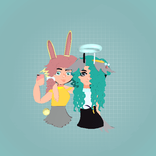 Me and my gacha friend uwu im the demon wolf with a halo and shes a cute lill bunny @-@